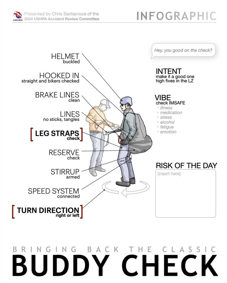 Flying at Marina Beach is different than most other places we fly. We are often flying slow and low to the ground. In a mountain site that would not be very safe, but at a coastal site you have a breeze that keeps you up. It allows you to have much more control where you land. If you are returning to the setup area and see people around, you have the option to just keep flying and land in a safe clear area on the beach. Knowing the safe wind speeds and directions is important before you fly. You should never try to launch when the public is near. Wait for a clear path or walk down the beach to the next relaunch zone. Knowing the risks of the site and knowing how to mitigate them is how we all will keep flying Marina beach for years to come. It also very important to the success of the RRG that insures the USHPA sites we all fly.Help out a fellow pilot and buddy check them before they fly